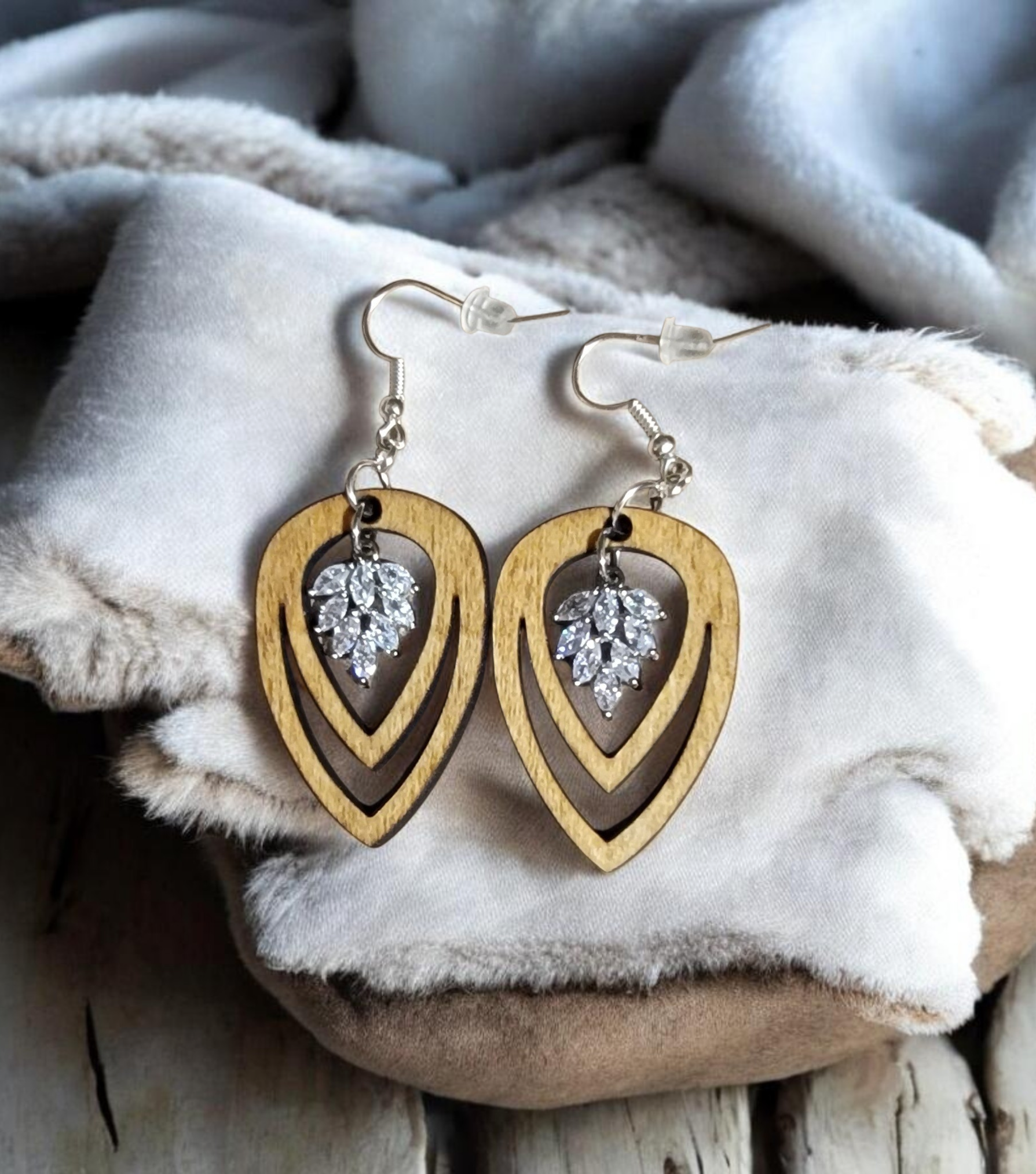 Rustic laser cut statement earrings with a crystal accent - lightweight statement jewelry